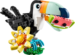 Geniet van exotisch speelplezier met deze prachtige LEGO® Creator 3in1 Wilde dieren: tropische toekan (31173) set. De LEGO vogel zit op een tak met bloem en heeft een sappige schijf watermeloen. Zijn vleugels, snavel en staartveren zijn verstelbaar.